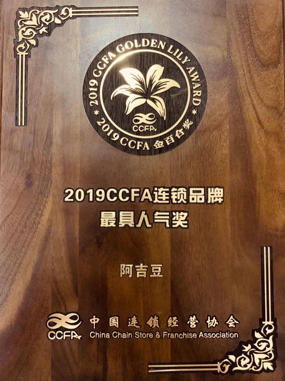 阿吉豆荣获”2019CCFA连锁品牌最具人气奖”